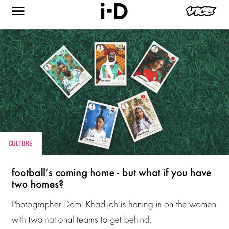 A visual celebration of the diversity that makes up England themed around the 2018 FIFA World. One women living in the UK today was chosen to represent each of the five African countries that qualified for the World Cup; Nigeria, Morocco, Tunisia, Senegal and Egypt.